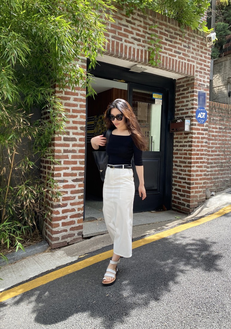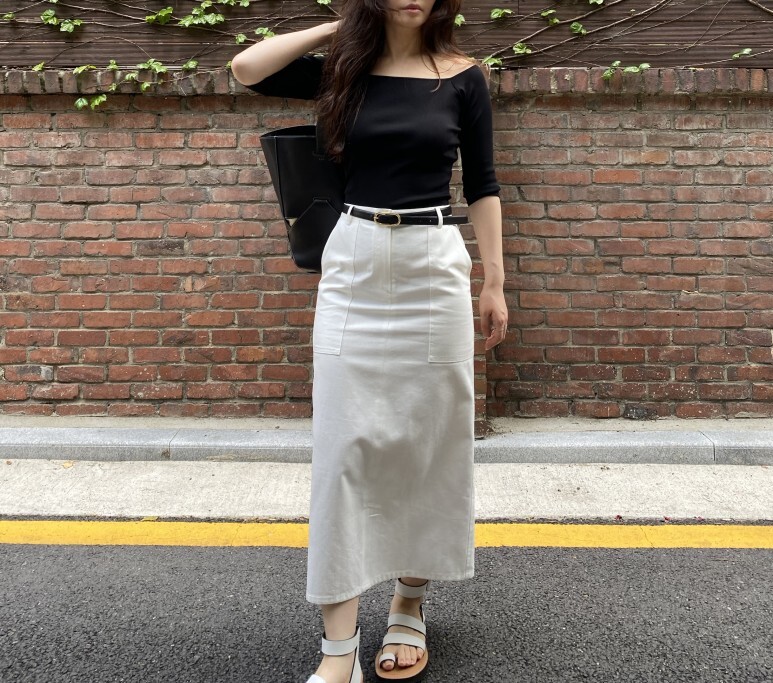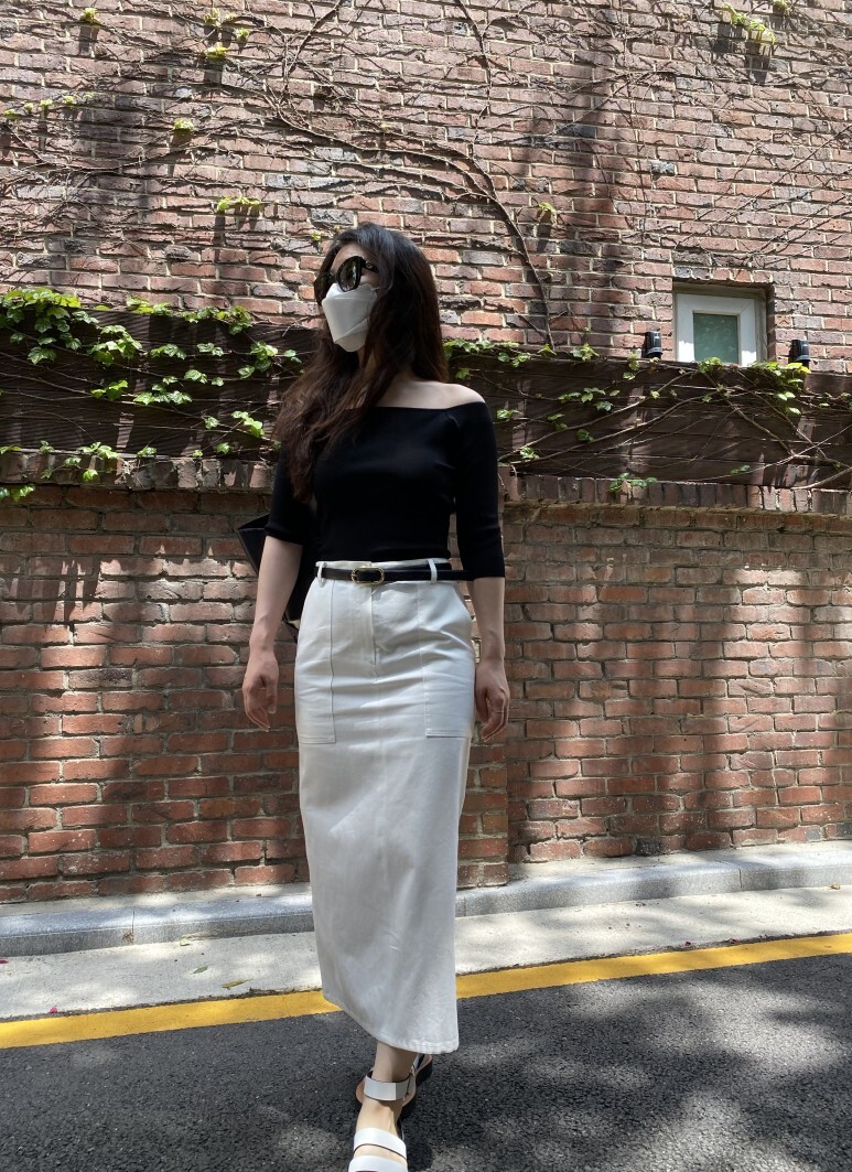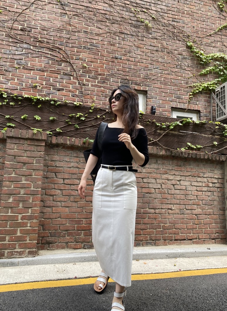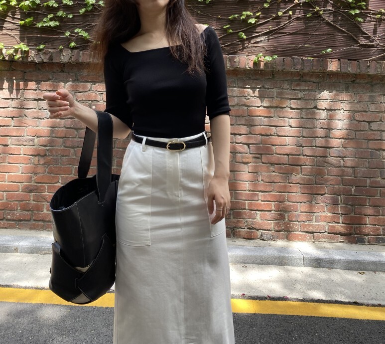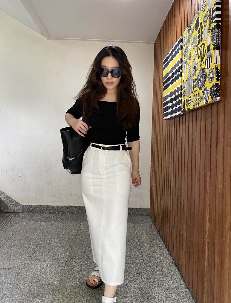 화이트 아마로 에이치 스커트 , S 사이즈 착용 하였습니다.