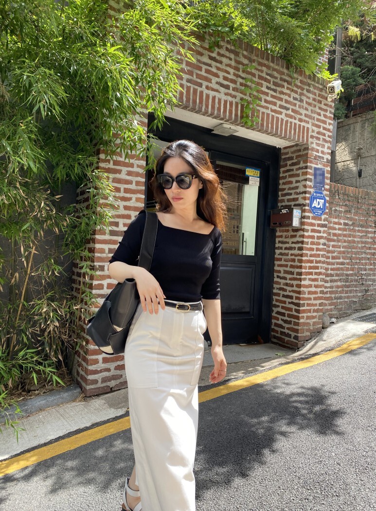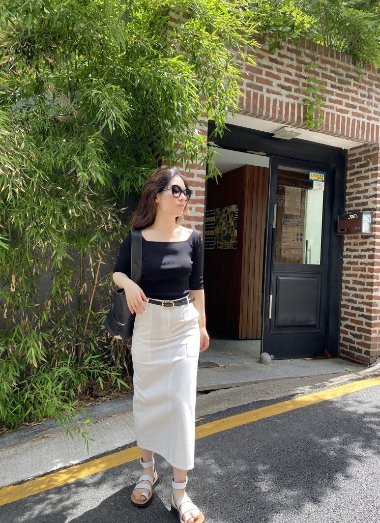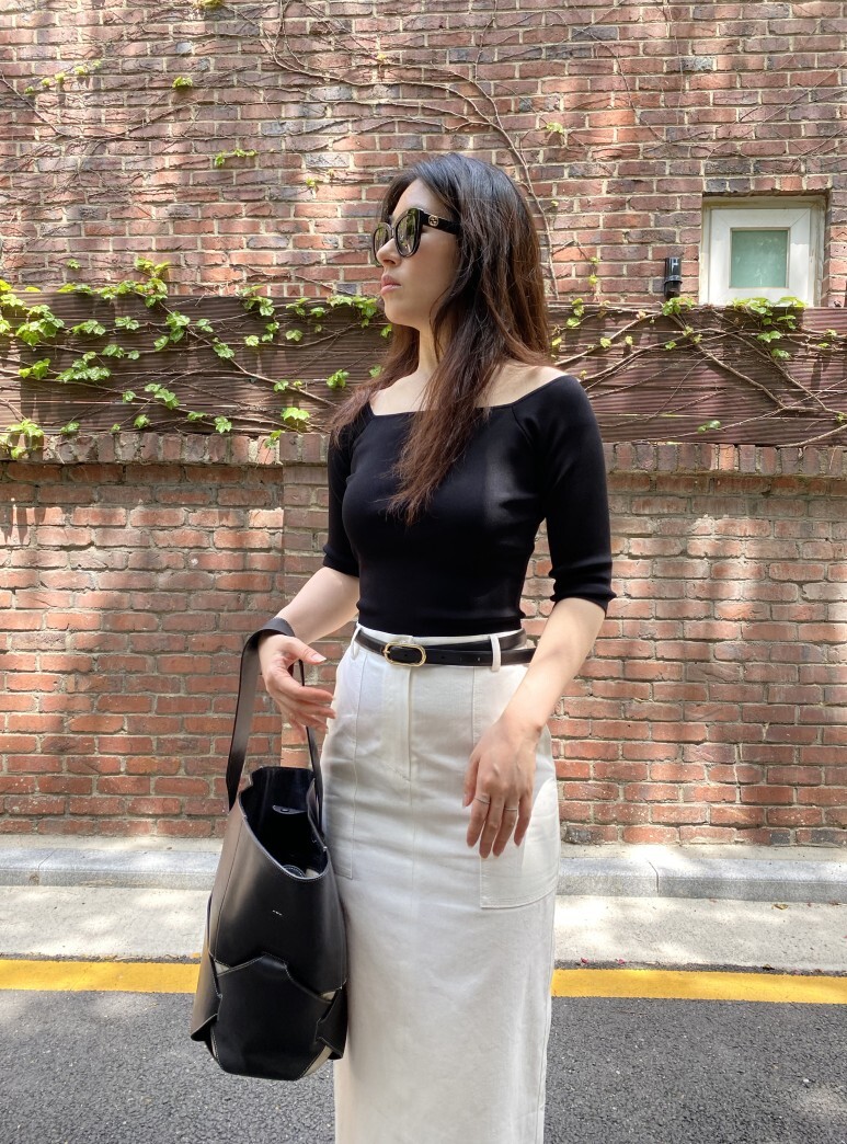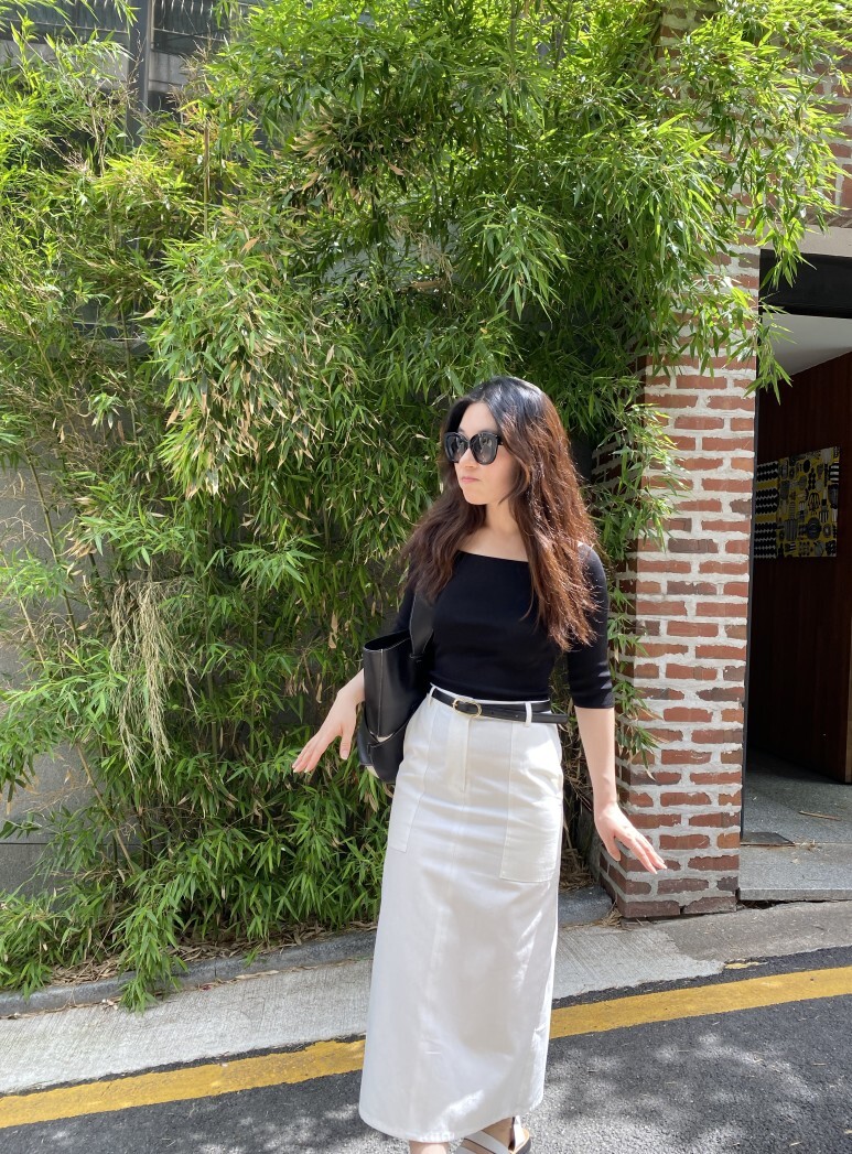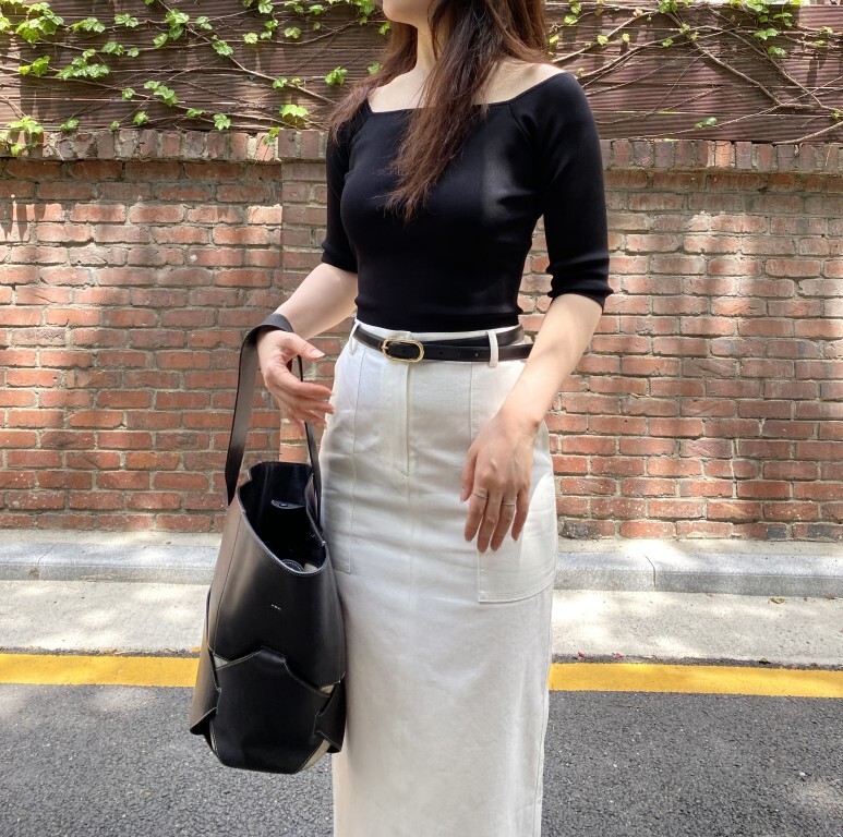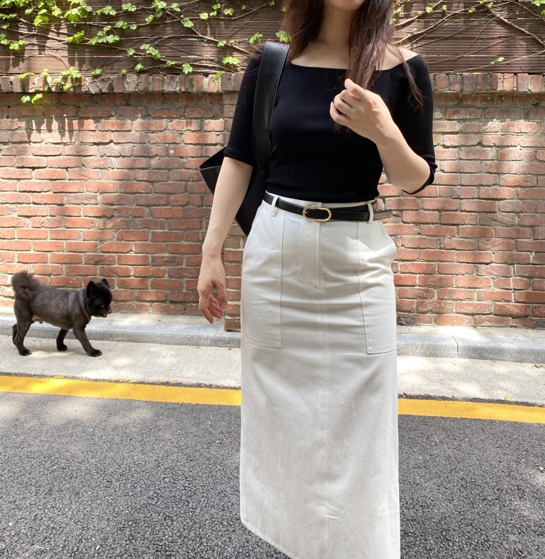 화이트 아마로 에이치 스커트 , S 사이즈 착용 하였습니다.