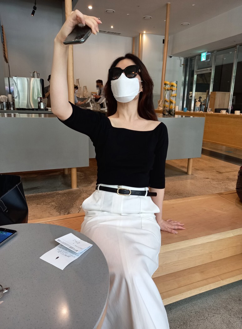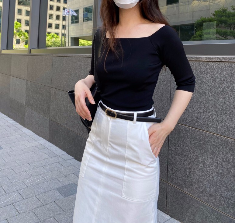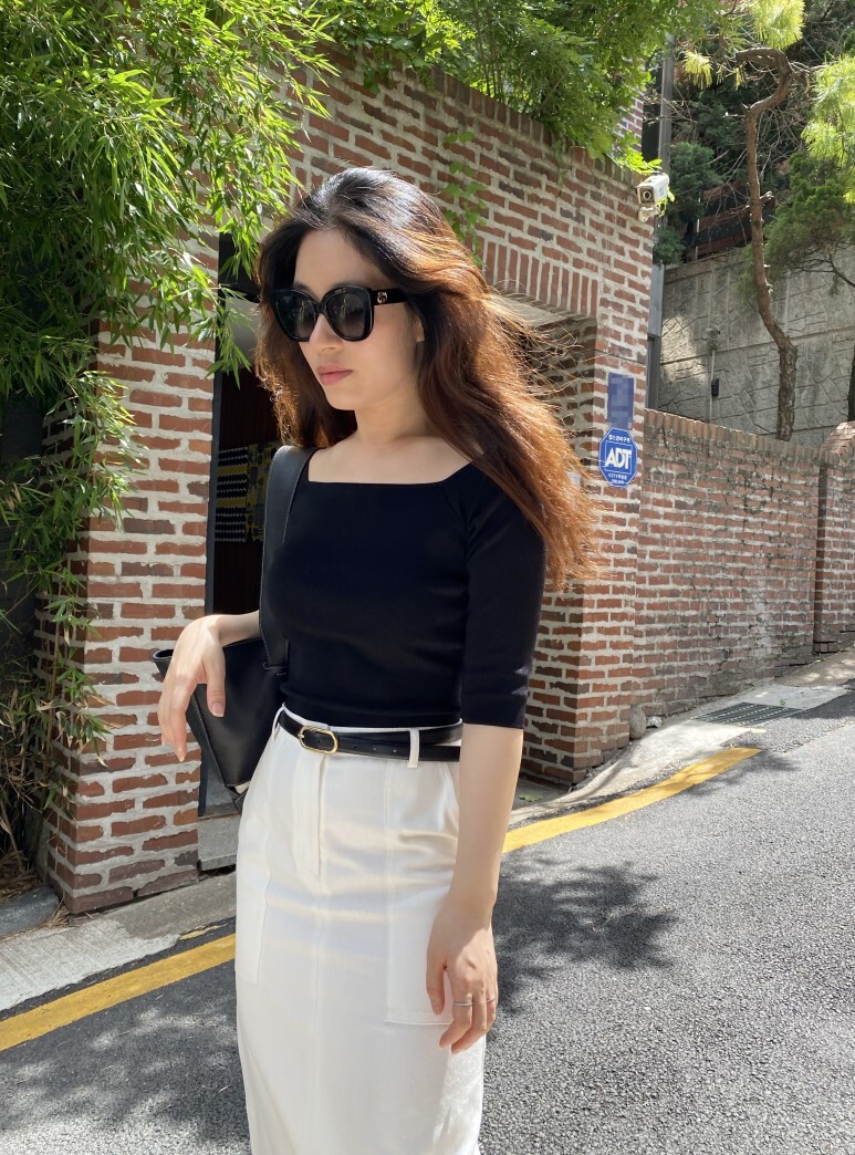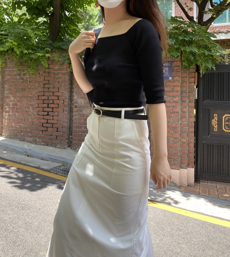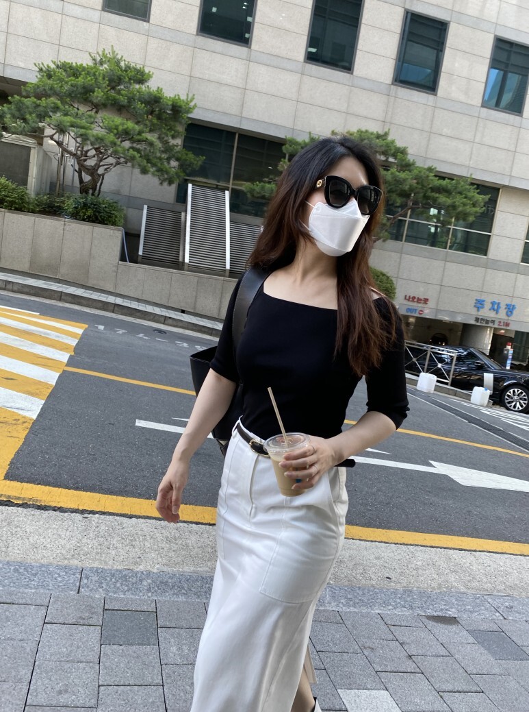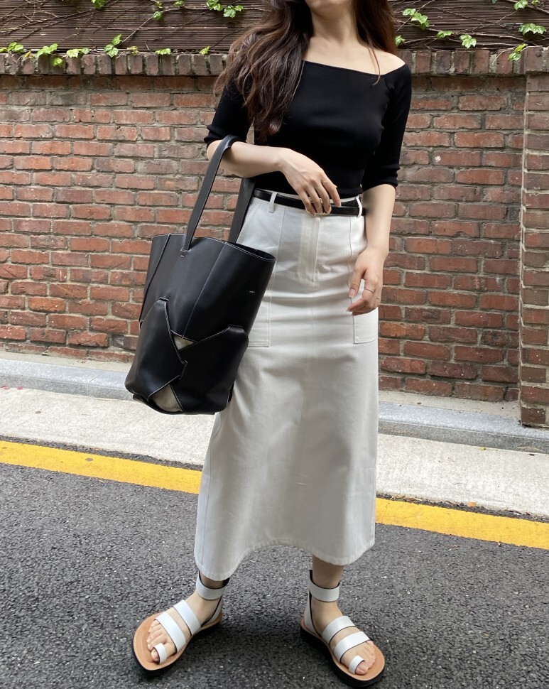 화이트 아마로 에이치 스커트 , S 사이즈 착용 하였습니다.