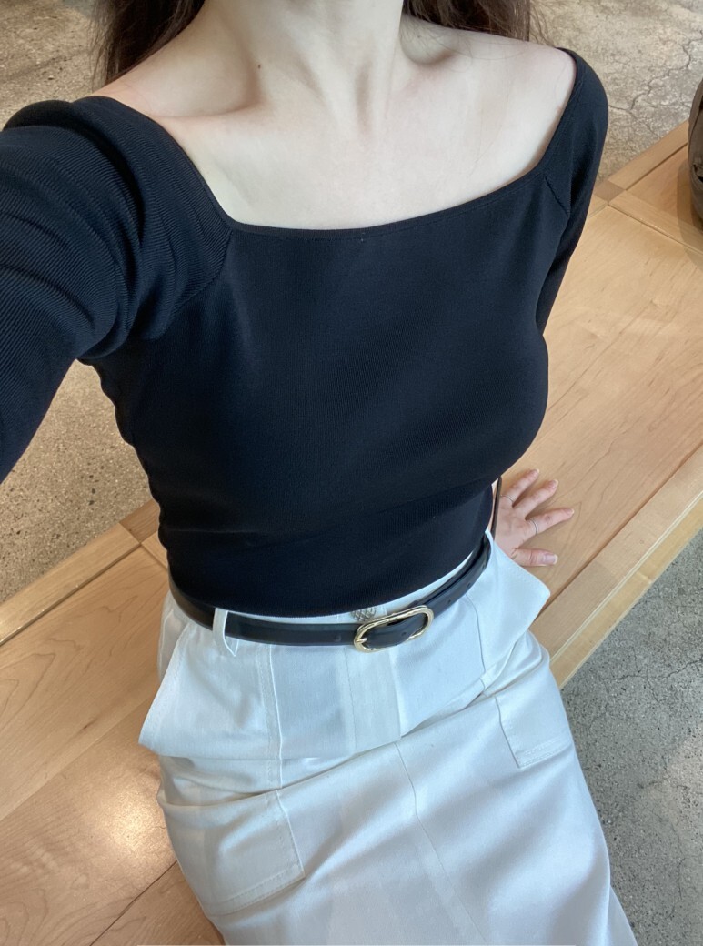 꼭 블랙의 세련된 니트 오프숄더나 니트 블라우스랑