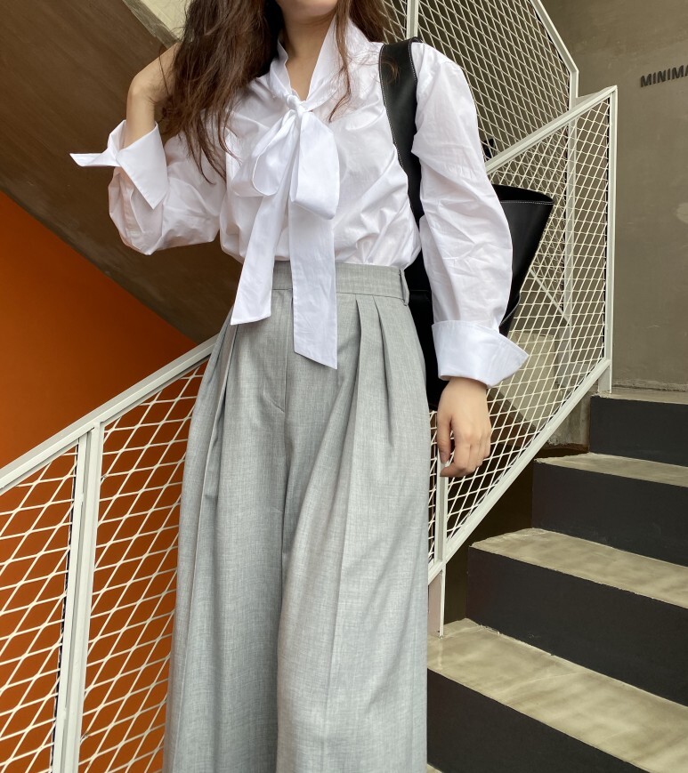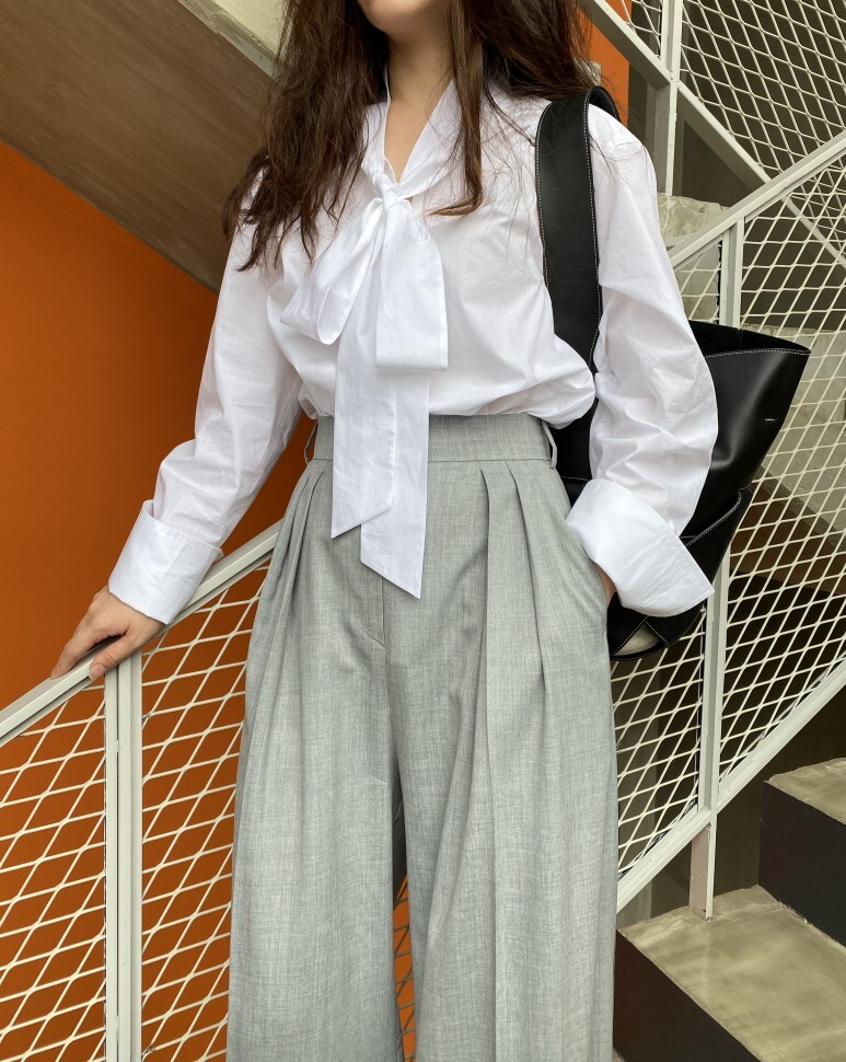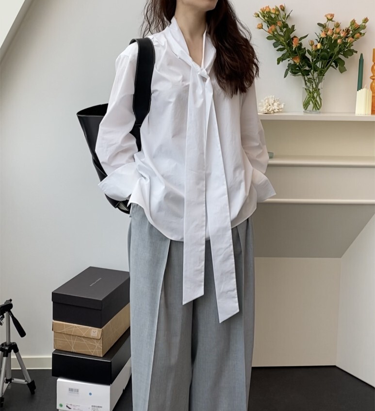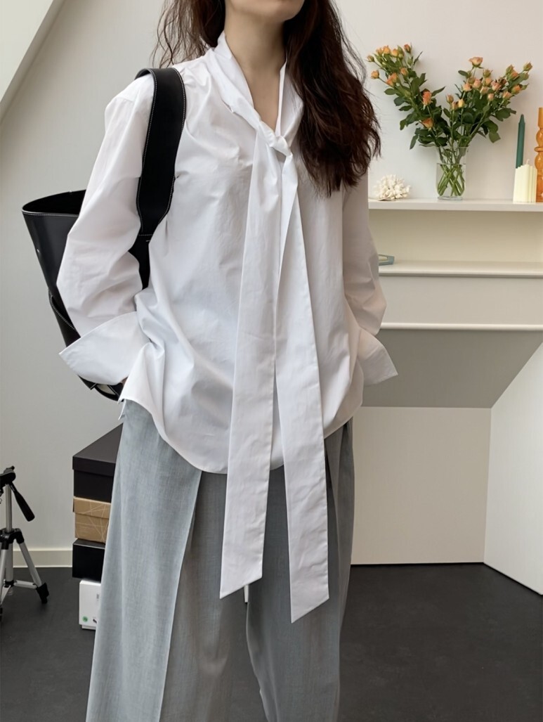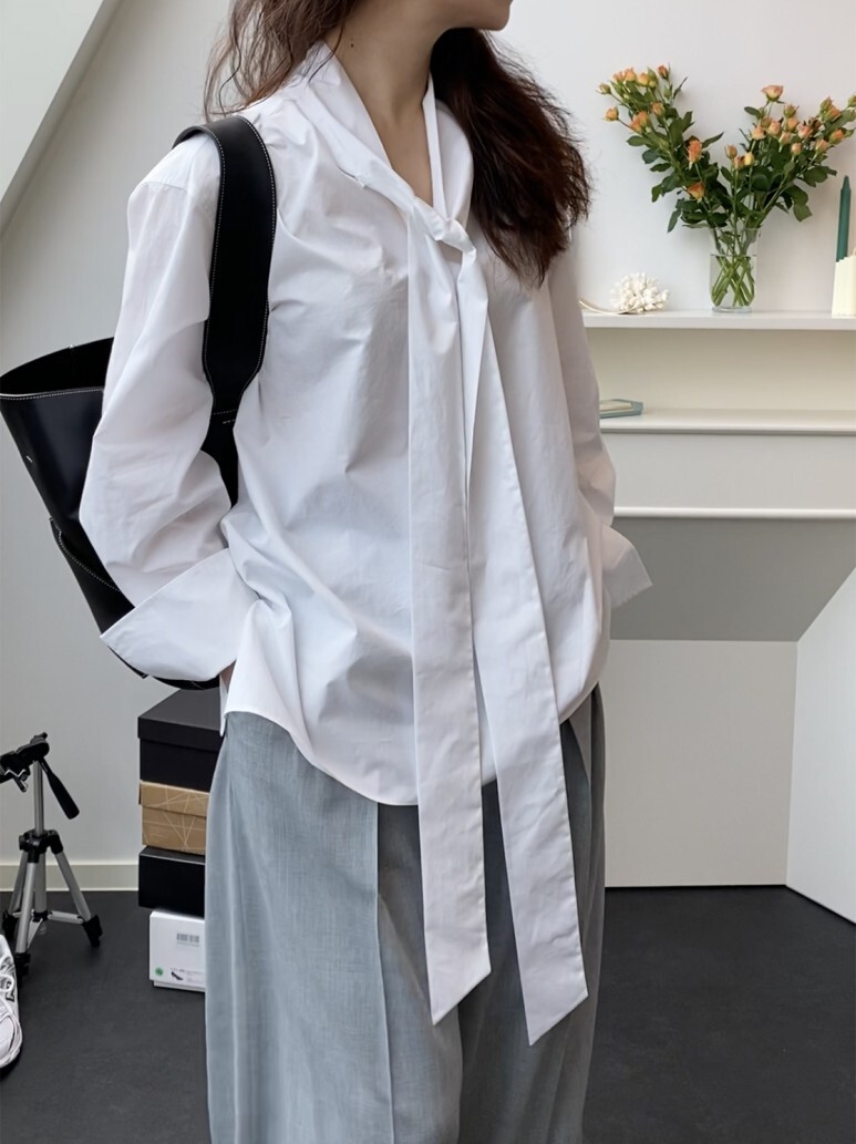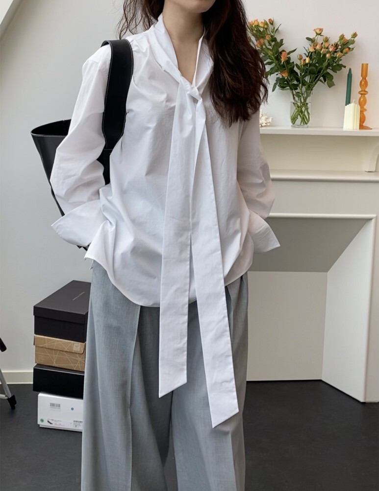 보우 화이트 셔츠. FREE 사이즈 착용 하였습니다.