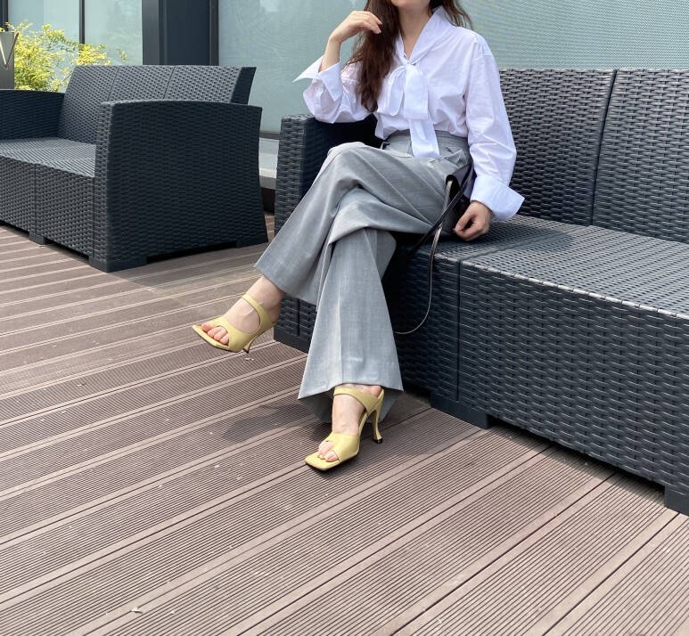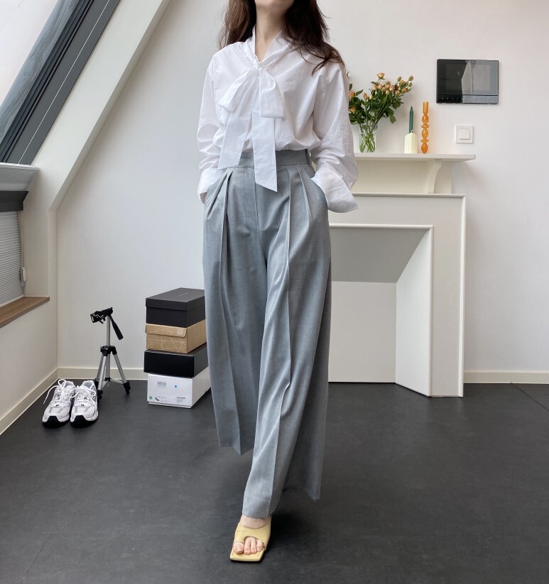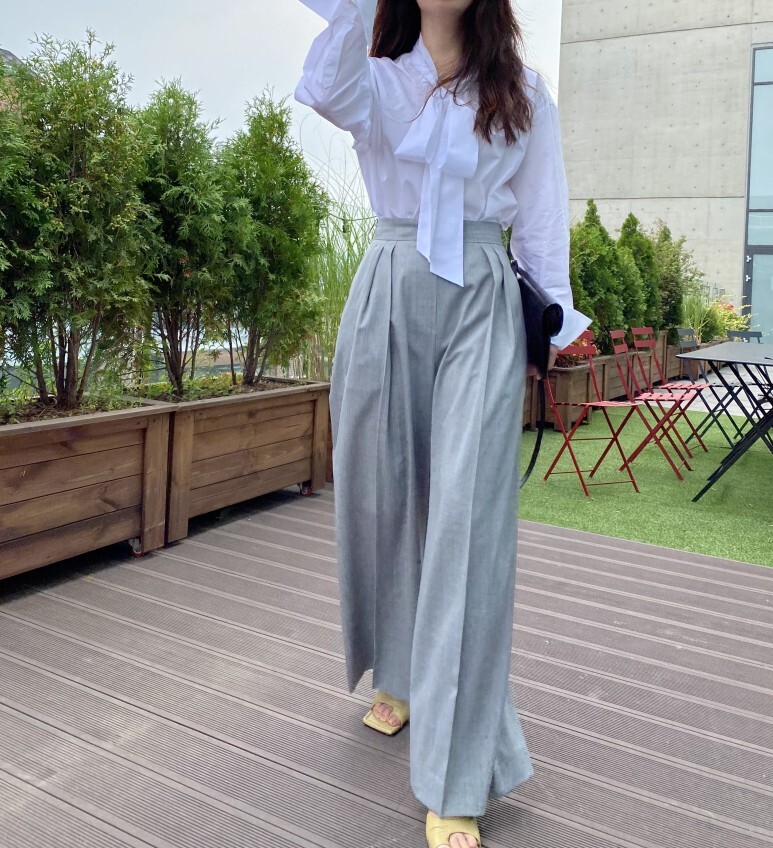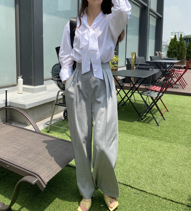 팬츠와 함께 우아한 90년대 룩을